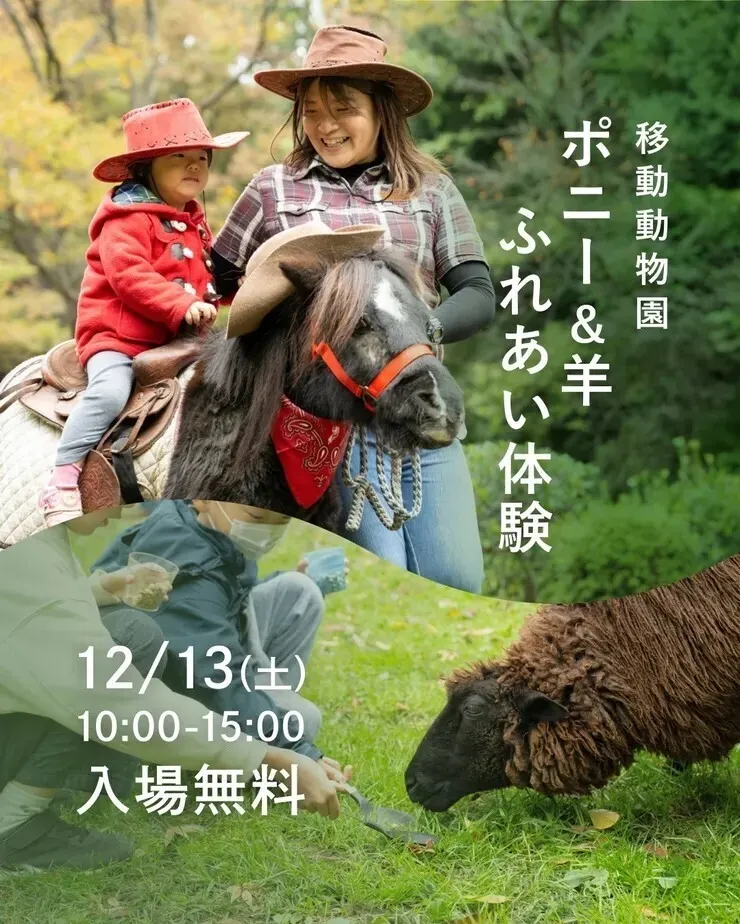 ポニー&羊のふれあい体験、入場無料とのことです。寒い時期も自然を楽しむきっかけになりそうですね。ぜひご利用されてはいかがでしょう!
