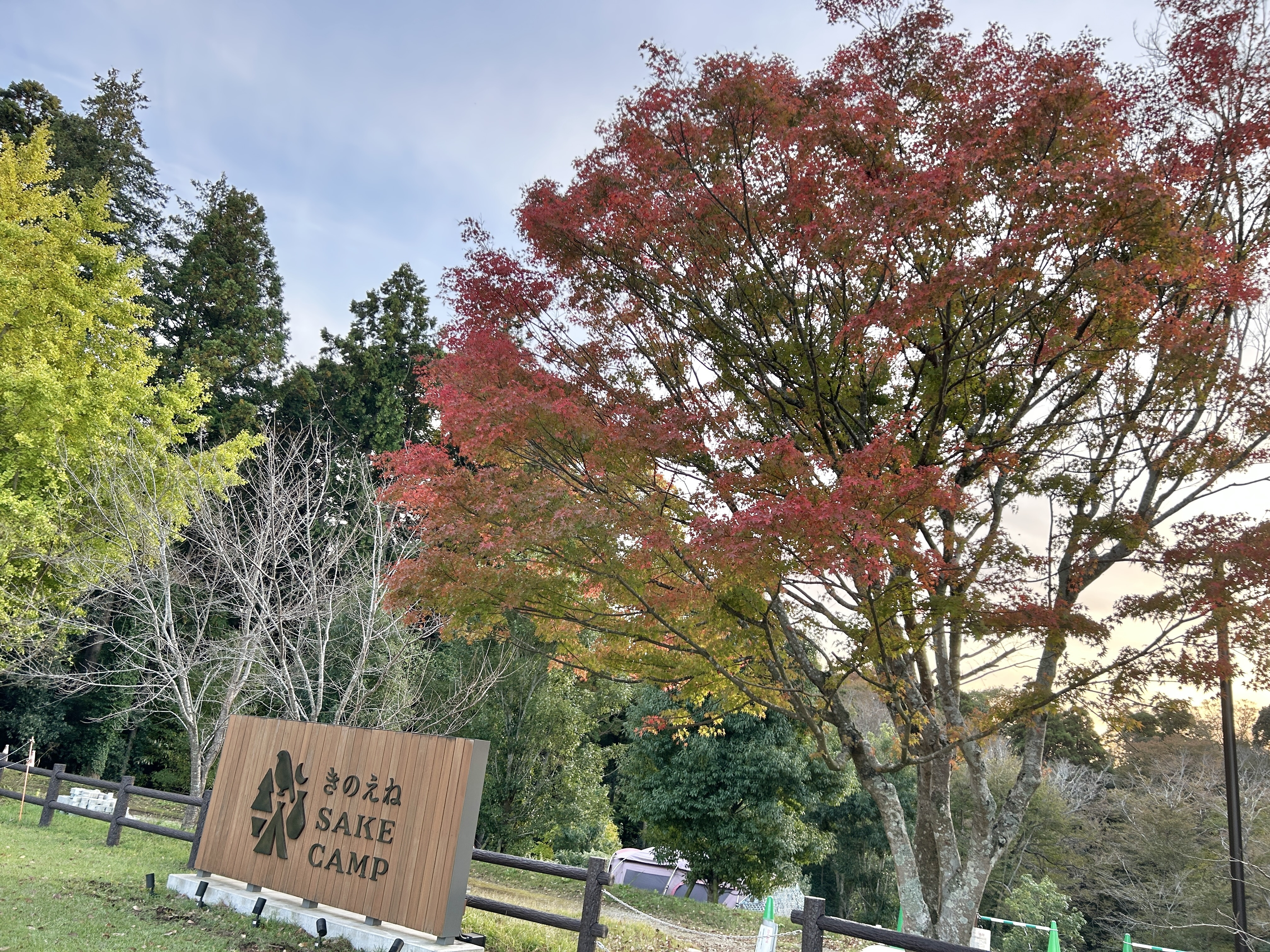 さて、キャンプ場の入り口には紅葉した木が宿泊の方をお出迎えしています。