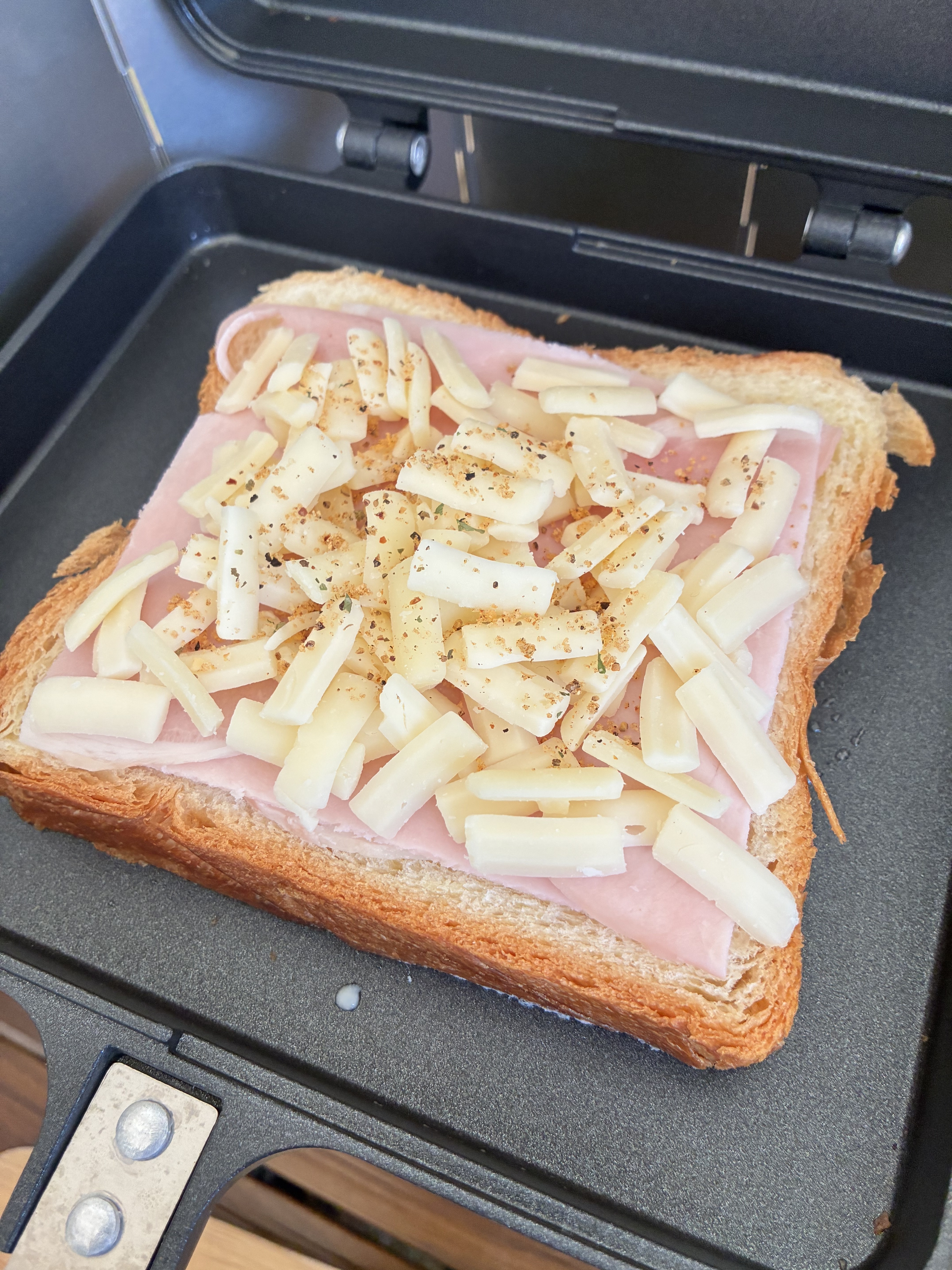 まずはハムとチーズをはさんでバターでホットサンド