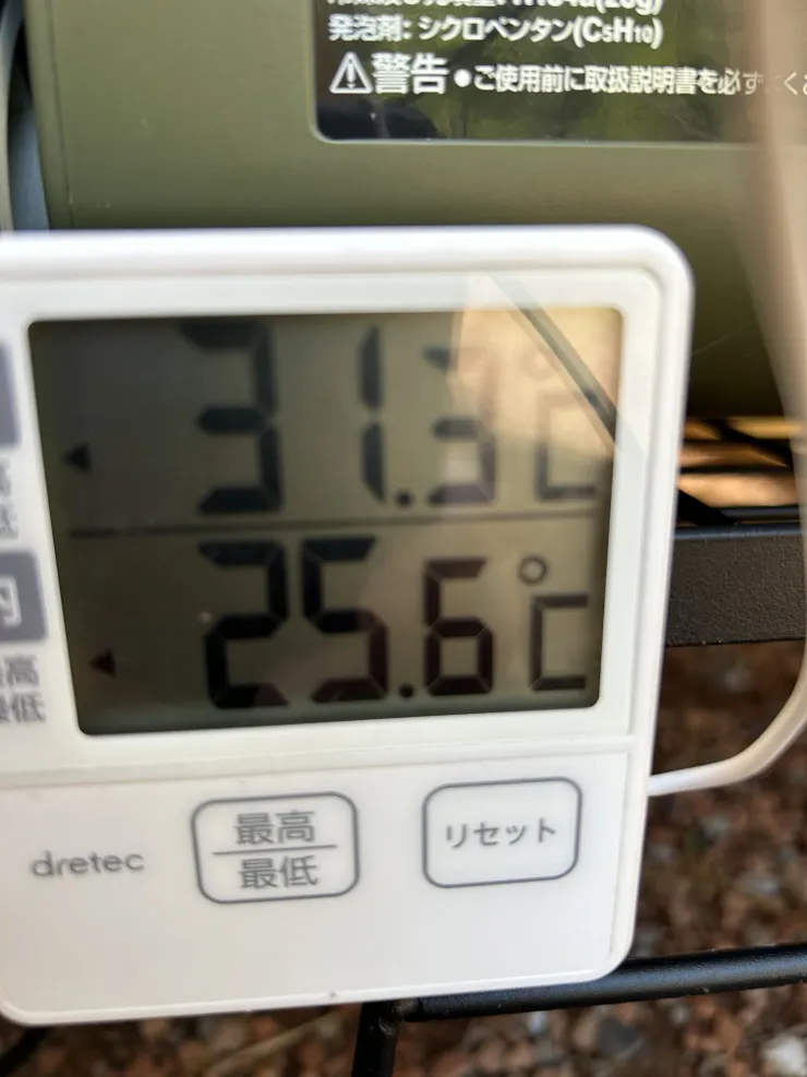 夜の寒さ対策用に準備した薪ストーブは外での使用となりましたとさ