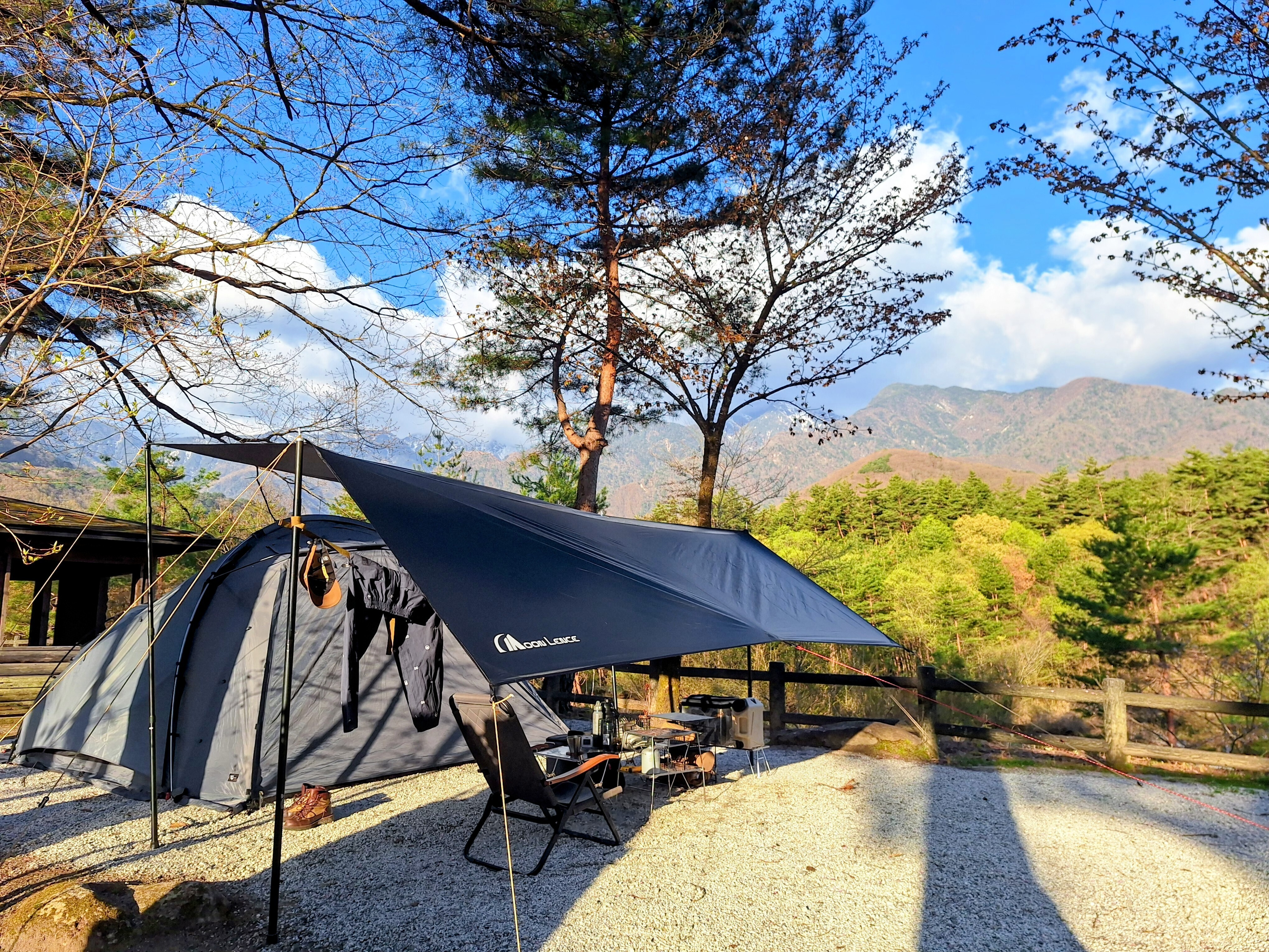 なるほど~❣️右下がりに建てるとテントと連結した感じになりますね( ˙꒳˙ )❣️