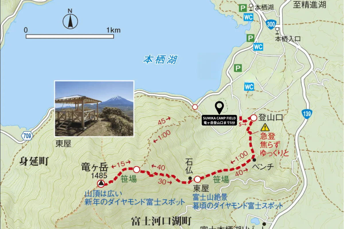 ダイヤモンド富士が見れる!竜ヶ岳登山口まで徒歩最短3分の好アクセスキャンプ場
