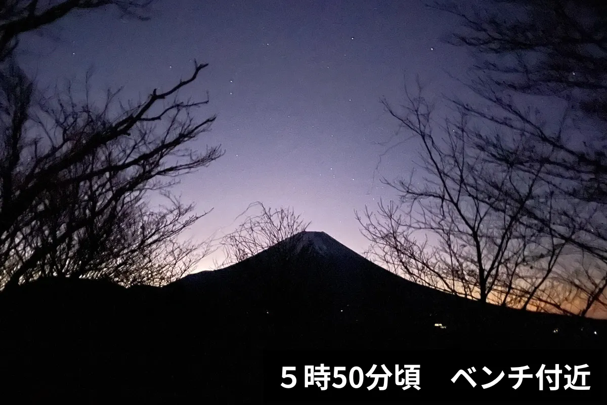 ↑↑↑5時50分頃 ベンチ付近からの富士山 星と富士山のシルエットが◎