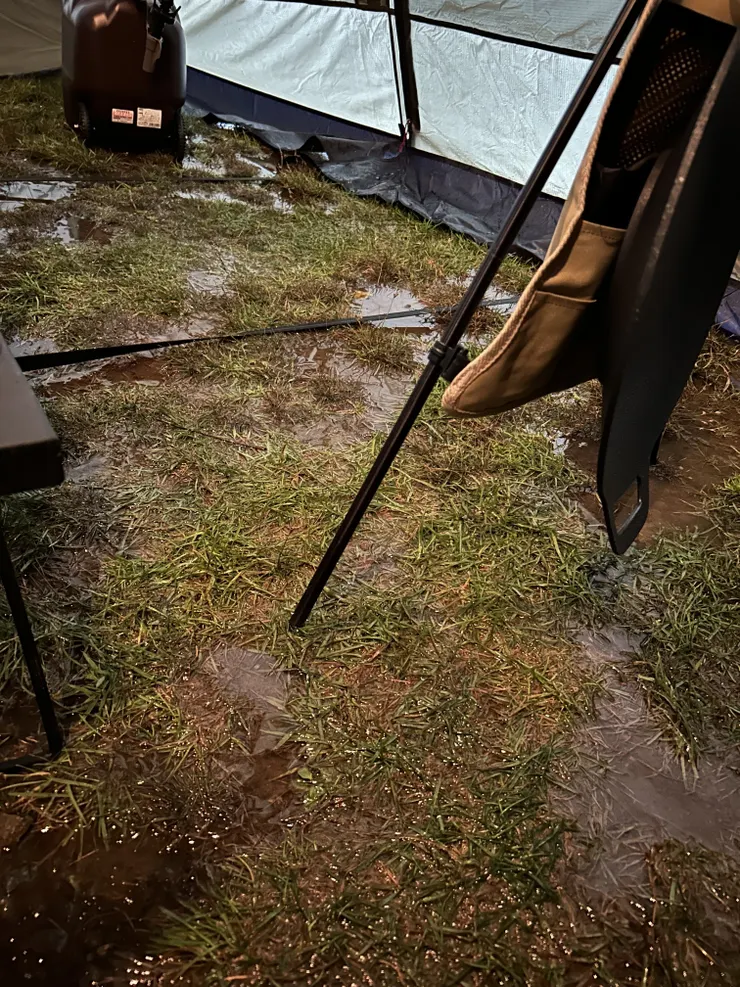 その状態であの大雨強風乗り切ったこのテント凄い🙌