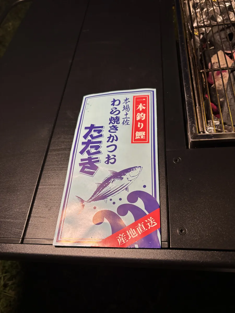 という事で、調査の結果道中(須崎の道の駅内)で美味しいと評判の多田水産さんの鰹のたたき(藁焼き生鰹たたき)を買ってキャンプ場に向かいました🚗³₃