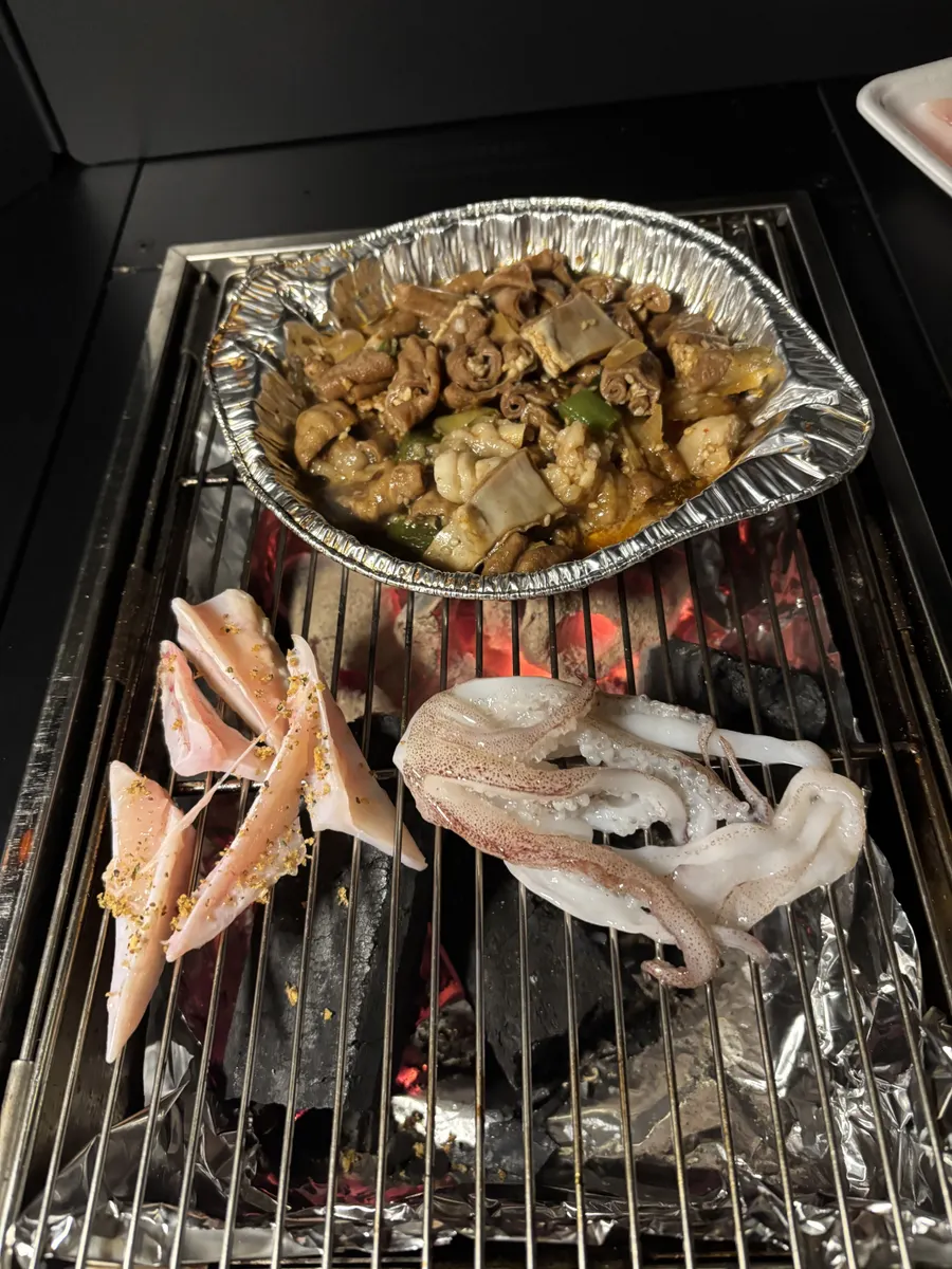 そして、家から持ってきた剣先イカのゲソ、ヤゲン軟骨、それにロ-ソンで売ってるホルモン鍋
