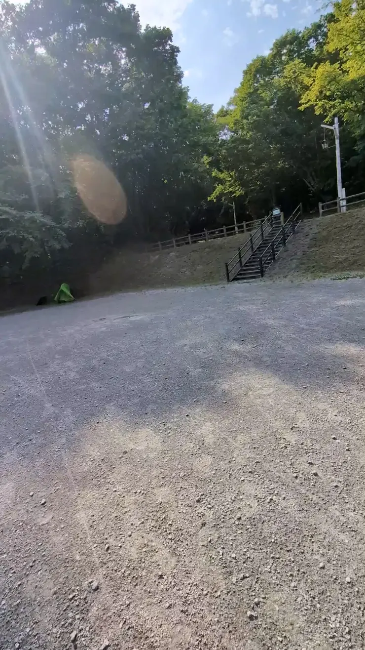 新千歳空港からほど近い千歳市の泉沢自然の森キャンプ場。どこのクチコミを見ても、荷物運びが大変だとのことで体験へ。駐車場から荷物乗降場まで高低差13m。荷物乗降場から管理棟まで高低差5m。