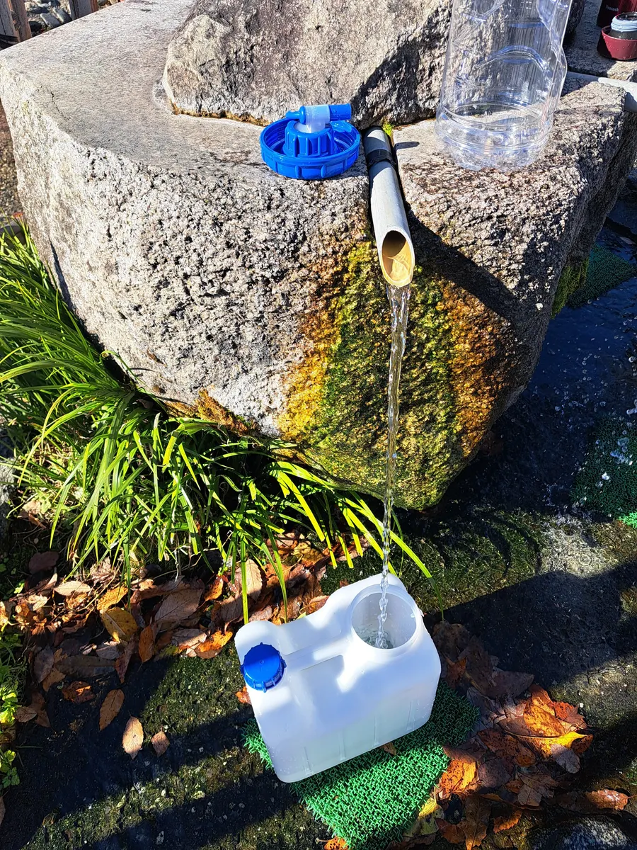 今回はお気に入りのFLAMME日向山オートキャンプサイトへ。近くの道の駅で天然水を汲んでからキャンプ場へ。