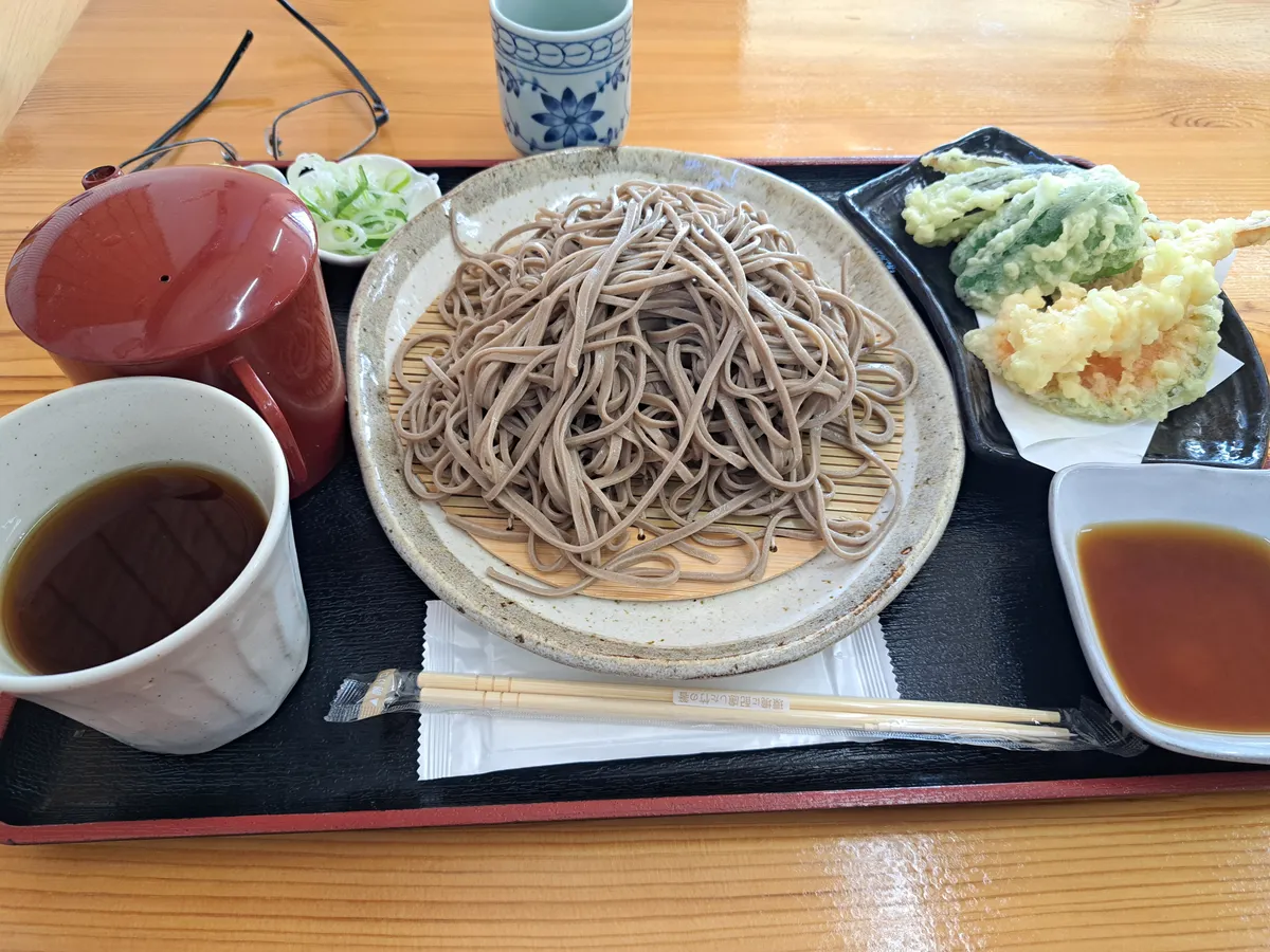 新そばの十割そばに揚げたてサクサクの天ぷらでした。