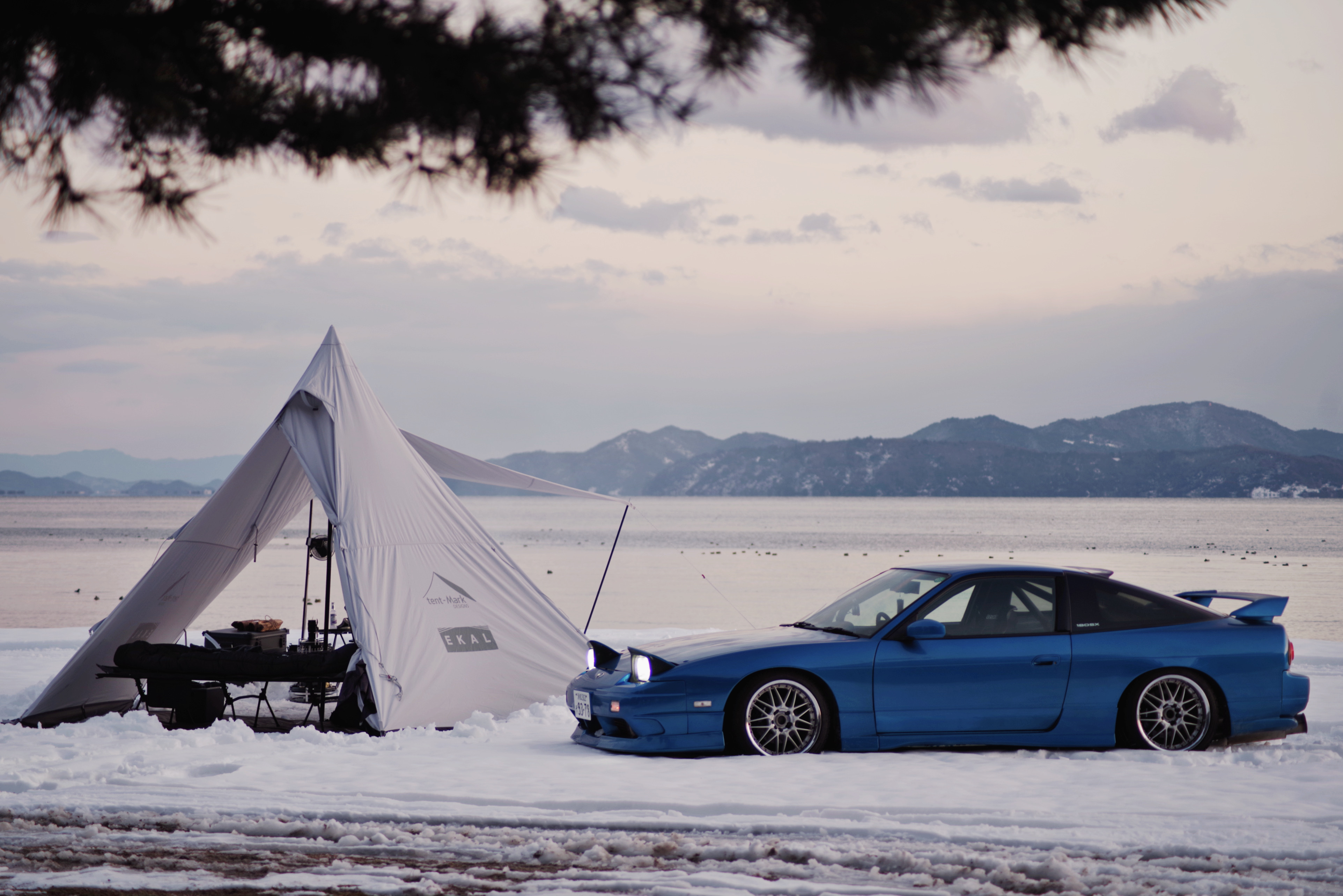 投稿を表示雪中campに180SX Blue映えますね😎♬