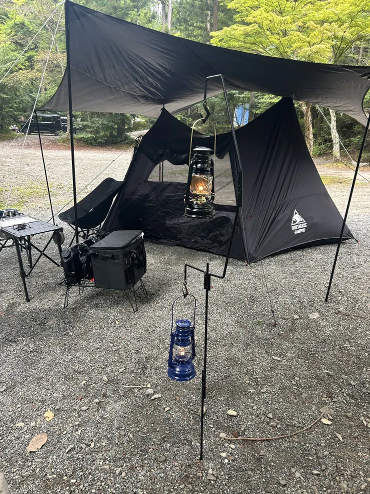 連休明け火曜日1泊キャンプ。夏休み中で覚悟してましたが迷惑ファミリーキャンパーに少々悩まされました。