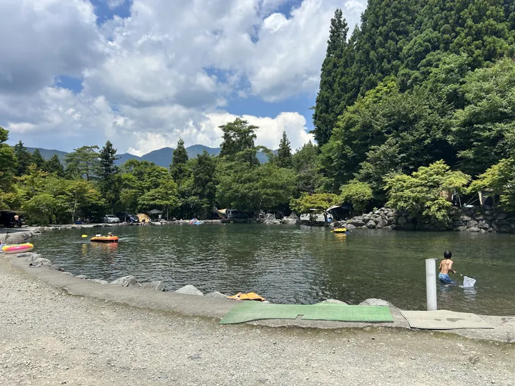自分のテント直ぐ前に河原に降りる道があり河原サイトは他も降りる道はそれぞれありますが丁度自分のサイト正面の河原が浅く岩が無い池みたいな場所だったのでそこに数時間陣取られ自分らのサイトから車まで自分の隣のサイトに移動して陣取りだし2家族が入れ替わりテント前に出したテーブルの直ぐ前を水着で出入りされ災難でした。