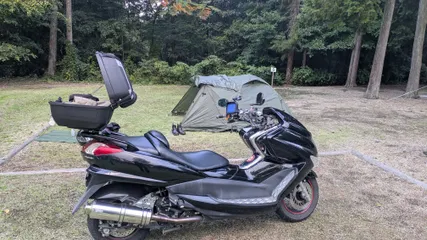 さめうらテントパークにタンデムキャンプツーリング初めての林間サイトでしたが虫は多いけど静かで涼しく過ごし良かったです駐車スペースは舗装されてなくて傾斜がありビッグスクータータンデムはきつかったけどまた行きたい