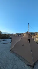 今冬の冬キャンプ開始です。約1年振りに引っ張り出した薪ストーブも元気に暖めてくれました。北風と太陽みたいに暑さ対策より寒さ対策の方が何とかなりますね。
