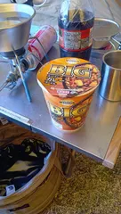 さてさて、日も暮れて良い時間なので夕食をば。 今夜は簡単に鍋で。いやぁ~冬キャンプの鍋は、やっぱり良いですねぇ。味付けは、赤から鍋と味噌鍋のミックス。寒いと濃い味が欲しくなります。具材はカット野菜と豚肉と鶏団子。あと、水で戻した乾燥しいたけ。しいたけの戻し水は、明日のキャンプ飯に使うので保