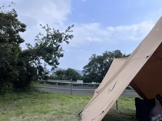 徳島です。キャンプ地では毎回写真を残しているものの、ホント工夫がない似たような画像しかなく申し訳ないです。 海寄りの区画を取りました、と言っても完ソロなのでどこでもいいです、と言われました(ロッジの方はどなたかいたようですけど)。 この後仕事で大阪に向かいましたが、またしても渦潮