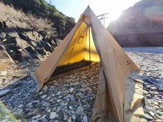 元旦から2026年最初のキャンプですw 川湯野営場はタープだけ持ってキャンプを初めて体験し、初めて一泊キャンプった記念すべき場所です!この日はとても暖かく、幕内から見上げた空は青々としていやでも気持ちが高揚してきます! なんで私はキャンプをするのだろう?そこにキャンプ場があるからやねんww
