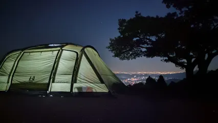佐賀県 FUNAYAMA MOUNTAINです展望側からの景色がとても美しく特に佐賀市や多久市の夜景が綺麗に見えてとても気に行ってます!サイトは固いのでコンクリも砕く鍛造スチールペク必携です