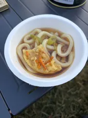 千歳フォーエバーキャンプ場で3回目のキャンプ! 今回もソロでお邪魔しました。設営を終えて、昼飯にサンドイッチを食べていたら、親切なご夫婦がうどんを恵んでくれました!もしかして、ひもじく見えたのかも😆 人の温かみを体感できました。本当に嬉しいです!寒い日には暖かい物が沁みました😁