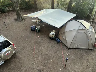 NEW 《サイト紹介》 【プラン】 ・【150㎡】こもれびオートサイト 【サイト番号】・1番 【おすすめポイント】・約150㎡(約13m×13m)の広々サイト!8名までのグループや2世帯キャンプに最適 ・サイト内に車2台まで乗り入れ可能!荷物が多くても安心の