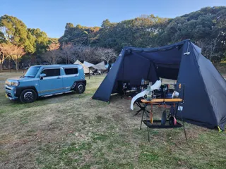 45泊目2025/12/19から1泊〜今日は完ソロ😁 夜勤明けて家に帰って準備していざ、出発したら保土ヶ谷バイパスからK3永田まで渋滞…釜利谷回って渋滞回避… 到着予定時刻50分遅とりあえず無事に到着🚗さっさと設営しましょう設営後におやつ🍪キャンプ場の裏手にあるロールケーキ屋さん