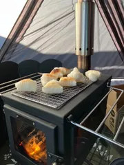 設営完了😄薪スト(ペレットストーブ)インストールに四苦八苦💦何とか設置出来ました🎉でも…今日、暖かい😅ストーブ無くても良いんじゃね?ってくらい。朝方最低気温も5℃💦ちなみに完ソロ予定でしたがフリーサイトに1組入るみたい。まぁフリーサイト離れてるからほぼ完ソロだな