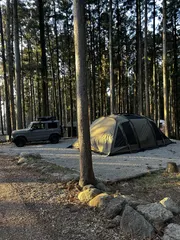ツルヤに行きたい、キャンプしたい、でも長野に行くのは遠い😣という我が家のお悩みを、1度に解消してくれるキャンプ場🏕️林間、砂利、区画サイトが私の好みなんでここはそう言った意味でも嬉しい☺️めちゃくちゃ人懐っこい猫ちゃん🐈🐈⬛がいます。我が家は🏠に1匹娘がいるので、ヤキモチ妬かれないように、臭いをつ