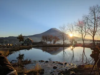 今回も富士山くっきりのピーカン☀️夜の気温が3℃深夜は2℃なので久しぶりに大型幕のGテントにパセコストーブ入れて電気毛布+湯たんぽの完全武装で水場の近くにテント張ったので油断して夜中のトイレに厚手のスウェットで外出たら恐ろしく寒かった〜(笑)早朝5時に後ろのキャンパーの車が警報音鳴り響いてビックリし