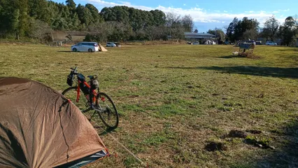 2025年最後は千葉ウシノヒロバへ自転車輪行風が強くて焚き火できない熱燗でお隠り
