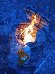 直火での焚き火。ブッシュクラフトをしながら直火で焚き火。