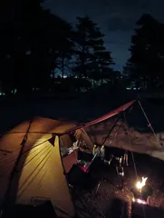 松林のキャンプ場松ぼっくりがころがっていたので準備してなかったけど思わず焚き火モード
