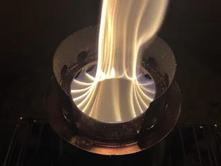 焚き火以外の熱源としてCB缶のバーナーを使って居ますが、寒冷期には火力が頼りにならないので、本当はホワイトガソリンのバーナーが欲しかったのを、アルコールコンロ(ホワイトガソリンと同様にポンプで圧力を掛けるタイプ)を導入しました😉 熱量は大差無いし、燃料がガソリンよりも安価です😃