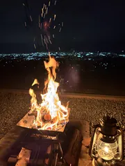 夜景と焚き火 夜景を楽しみながら焚き火も楽しむ😆至福の時なり👍