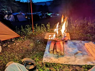 甲府盆地の夜景と焚き火 見たかった景色。でも今日は霞んでるみたい。明日の朝に期待。