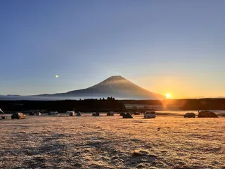 おはようおはよう朝トイレに行った時は全体が雲に覆われていたのに日の出に合わせて晴れてくれましたさすが富士山 外でコーヒー飲みたいが薪が切れて焚き火出来ないこういう時簡易ヒーターがあるといいのか