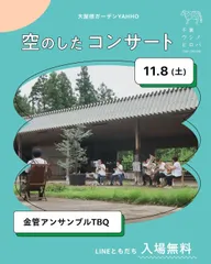 コーヒーやソフトクリームをお楽しみください🍦☕️..日時 11月8日(土) ①14:30- ②16:00-※それぞれ30分程度の演奏です。場所 大屋根ガーデンYAHHO※雨天の場合は中止します。🟢この日は、ウシノヒロバLINEアカウントの友だちは#入場無料 です🐄🌿友だちになると駐車料金もいつでも無