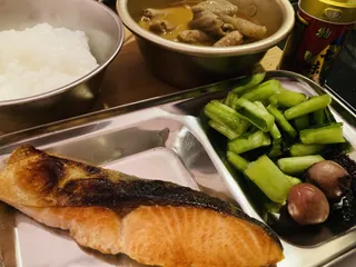 おはようございます😊 今年最後のキャンプ朝ごはんは、お粥 に 焼き鮭、ツルヤの野沢菜、梅干し に ベイシアのもつ煮✨ 食後のコーヒーまで含めて、心も体もほっとする美味しさでした☕️ごちそうさまでしたー!