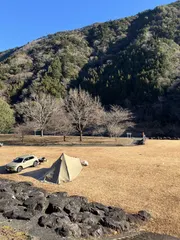 温泉入り放題に惹かれて連泊で来ました。オートキャンプ場は川沿いで川を眺めながらのキャンプは最高ですね!星空も綺麗でした✨温泉はぬる湯なので30分くらいじっくり入ると体の芯からポカポカになります。流し場も温水?温泉?がずっと出ているので助かります。キャンプ場に降りる坂が砂利道で急坂なので四駆を推奨して