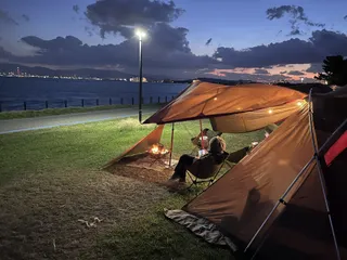 チェックインは車で入場しますがめちゃくちゃ並びました。海沿いで温泉もあって高規格なキャンプ場でした。
