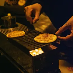 NEW 焚き火を囲んでケニーズ限定の”手焼きせんべい”を焼いてみるのもおすすめです。自然の中で焼きたてを味わうと、香ばしくて格別ですよ。おせんべい体験セットは管理棟にて販売中!朝晩は冷え込みますので、テント内で使えるヒーターのレンタルもご活用ください(在庫に限りあり)。皆さまのお越しをスタッフ一同心よりお待