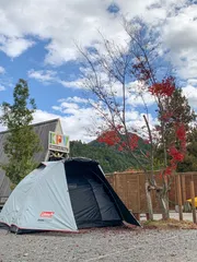 🍁紅葉キャンプのお誘い🍁 場内は色とりどりの紅葉で秋色に染まり、焚火のぬくもりが心地よい季節になりました。暖房器具のレンタルもあり、朝晩の冷え込みも安心です。平日はソロ割・シニア割・提携施設割でお得にご利用いただけます。 夜はもみじのライトアップも開催中✨冷える時期は、近くの「さ