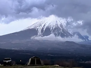 家族で初!聖地 主に家族でキャンプを始めて7年目で念願のキャンプ場デビューできた時の一枚です。2泊しましたが初日と2日目は霧がかかり綺麗な富士山の姿を崇めず。半分くらいは自然だから仕方ないと諦めていましたが最終日の朝は一転し明け方目を覚ますと雲一つない神々しい姿が目の前に。子供達も産まれて初めて近くで感じたTHE日