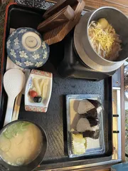 来たよ〜‼️朝ご飯🍚舞茸と栗🌰の釜飯でした!おにぎり🍙は鮭とたらこお味噌汁は大根、なめこ、里芋、豆腐お味噌汁はちゃんと2つ来ましたよ! どれも美味しい😋舞茸の風味が凄く良くて、まさかの栗がめちゃくちゃ美味しかった〜朝風呂入ってご飯🍚で出来ていて洗い物なし!最高だぁ😆