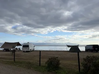 ア-リ-は9時から⋯管理棟が開くのを待つ⋯ウチらは3番手⋯湖畔沿い確保出来ないかもですね~😅