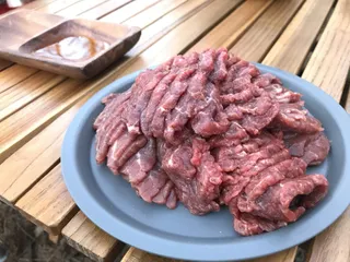 設営後、ちょっと一息ついでに馬刺しをペロリ。自然の中で食べる肉たまら〜ん。夜ご飯前になくなっちゃった笑
