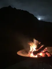 焚火と月と八剣山 八剣山に登山した後、麓のキャンプ場でソロ泊