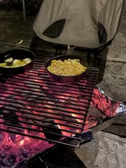 子供達のリクエストでコーンバターをスキレットで🎵こんがり焼けて美味しかったです( ´∀`)隣に見えてるのはニンニクのオリーブ煮みたいなやつです🧄🫕