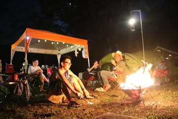 気の知れたメンバーとのキャンプ。キャンプファイヤーを囲んで、お酒を飲みながら語り合う最高の時間!