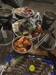 山盛り豆腐のサラダとBBQ🍖はい。お腹いっぱいです🥲どれだけ食べるねん!です😅😅