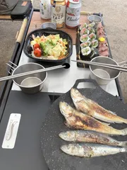 設営後のちょっとひととき🎶 持ってきたマルエフの缶が何故かボコボコ😅アルコールが薄かった😢もう一本あったのが救いです